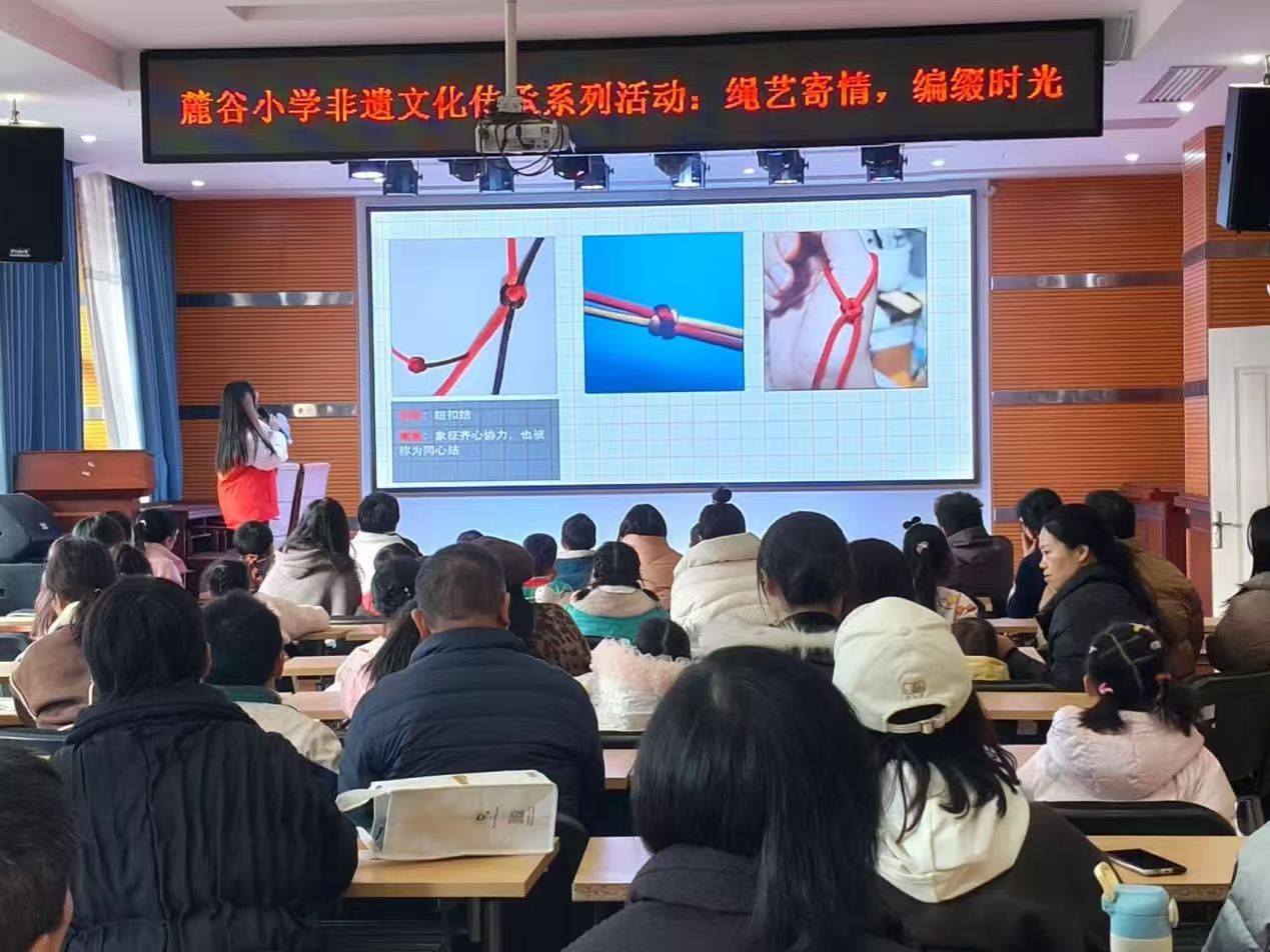 “大家知道一根绳子可以有多少种结法吗?”一个提问瞬间勾起了在场家长和孩子们的好奇心。志愿者结合资料生动呈现、讲解了绳艺编织的历史起源、制作工艺、文化价值,在场所有人都沉浸在了绳艺世界里。