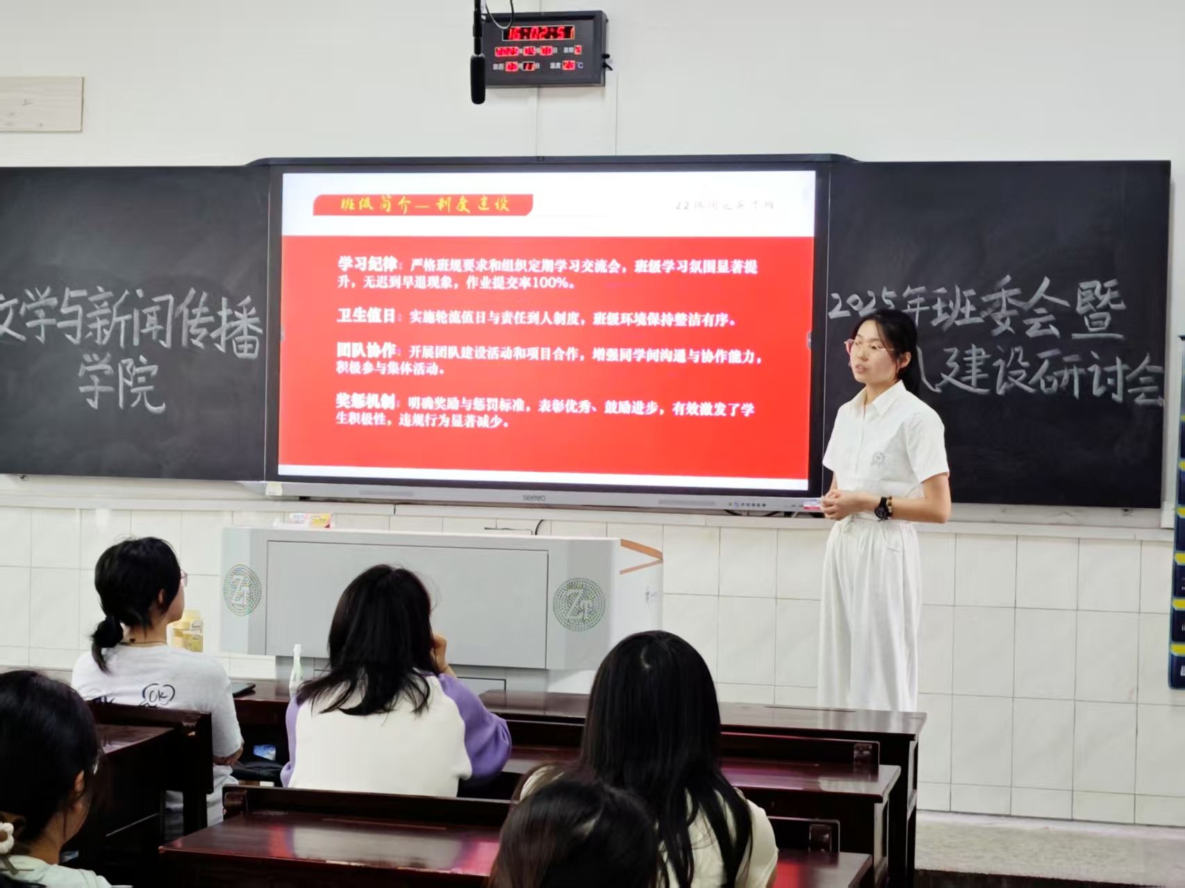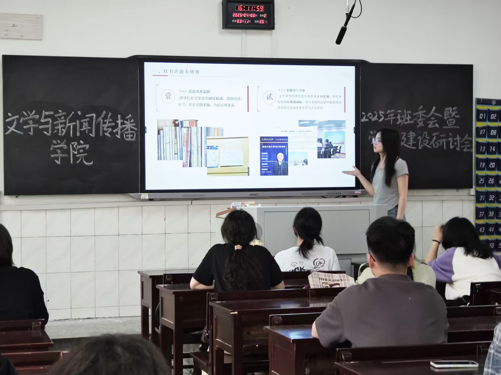 为进一步推动学风建设,营造良好的学习氛围,总结推广优秀班级建设经验,4月8日,我院于城南校区举办班级建设暨学风建设经验分享会,特别邀请曾获湖南省书香班级建设二等奖的2022级汉语言文学润之英才班班长与学习委员,就班级建设经验进行分享交流。