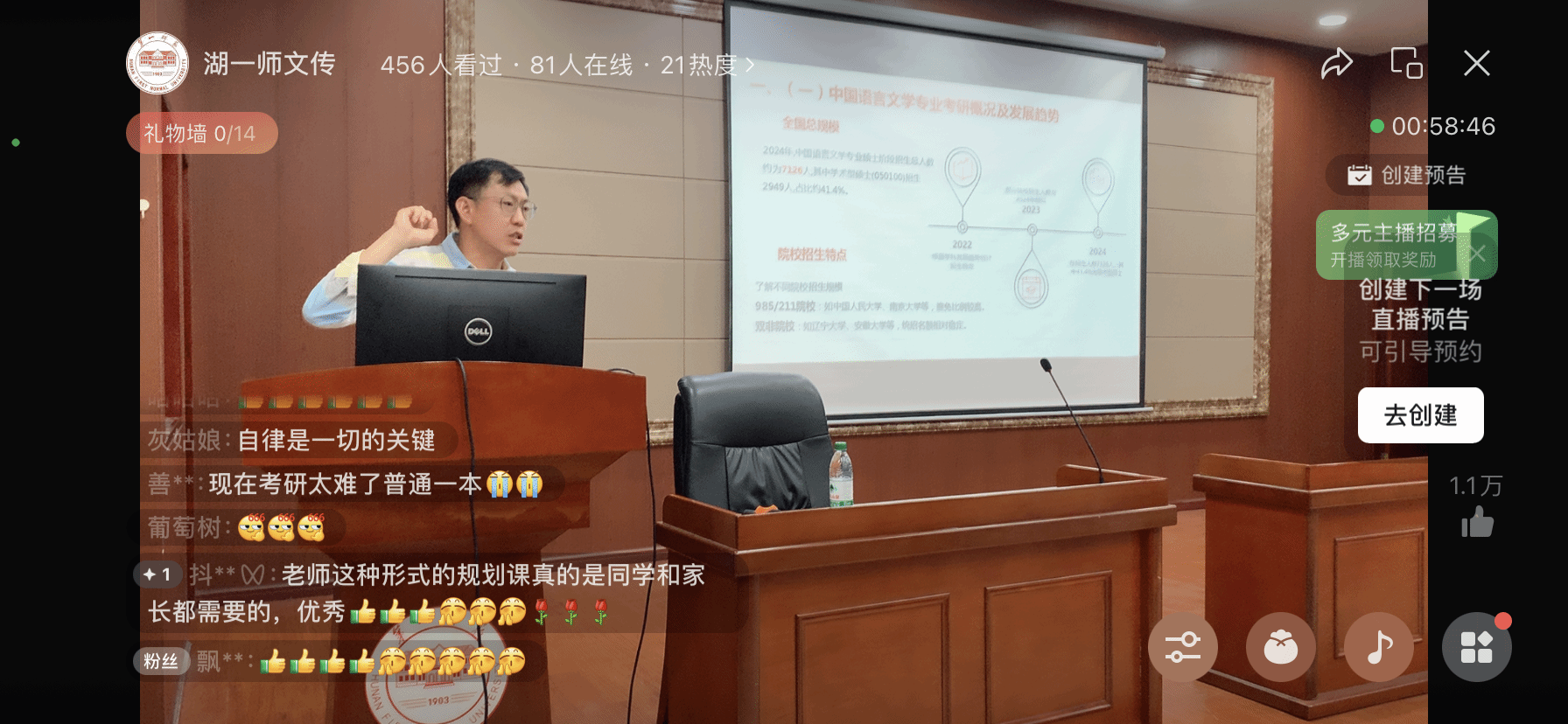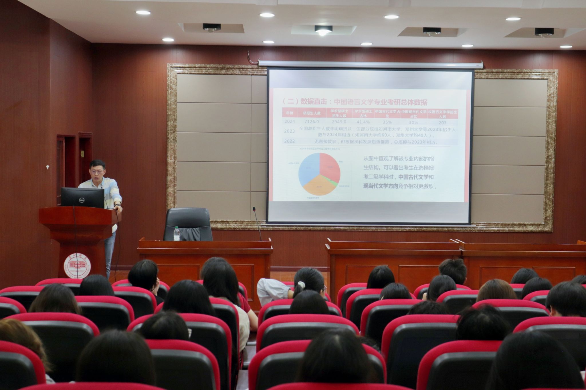 他着重强调,汉语言文学专业学生要稳步提升“听、说、读、写、教、研”核心素养,新闻传播专业学生要全面强化“采、编、播报、摄、创”专业技能,鼓励同学们以扎实的知识储备和专业能力,积极应对升学就业挑战。