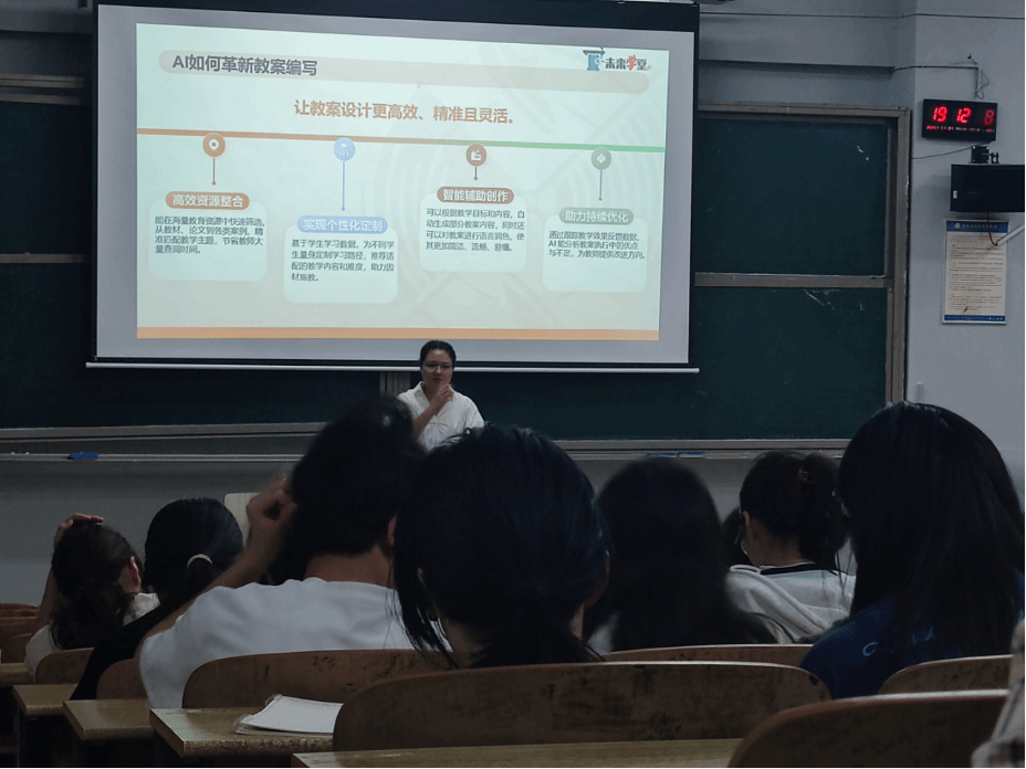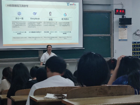 5月8日晚,由校图书馆发起、我院承办主题为“AI赋能教案设计开启教育新未来——让你轻松应对教案设计”的讲座在怀中南209火热开展。本次讲座由中小学教育资源及案例系统高级讲师张文倩主讲,吸引了全校180多名师生踊跃参与,共同探寻人工智能与教育教学深度融合的新路径。