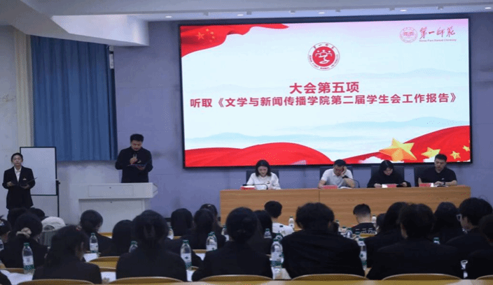 会上,我院第二届学生会执行主席邓宝彬代表第二届学生会作题为《厚德博学担使命,文以明道启新章,在服务文化强国建设中彰显文传学子的青春担当》的工作报告。报告指出,学生会聚焦思想引领、组织改革等六大领域体系化推进工作,在强化价值引导、激发组织活力、服务成长成才等方面成效显著,为学院高质量发展和学校“四个一师”建设注入澎湃青春动能。报告还就未来工作提出明确方向,强调将持续深化组织改革,拓展服务领域,强化桥梁纽带作用,引领广大同学在文化强国建设中贡献青春智慧与力量。