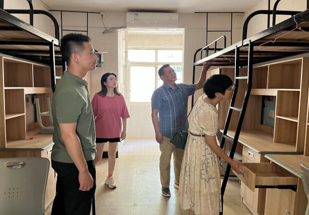 8月22日下午2点,我院党委副书记欧阳范剑带领全体辅导员来到学生公寓7、8栋,分工协作落实,逐层逐间清查,确保无遗留贵重物品,无安全隐患。