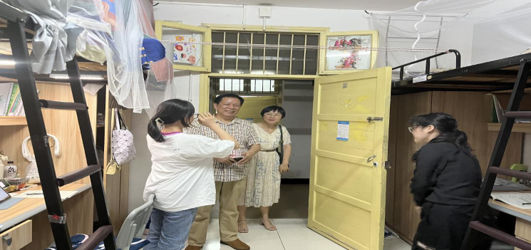 6月29日晚,我院党委副书记欧阳范剑、学工办主任唐科与辅导员刘晨晨一同前往留校学生寝室与图书馆,为同学们送去关爱与暖心。
