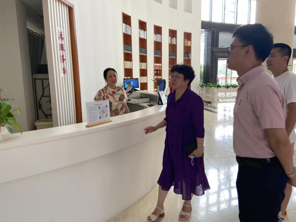 随后,李书记一行先后来到图书馆一楼大厅、阅览室、自习室、朗读区、监控室等,走访调研在馆学生学习状况、馆内服务设施、校园安全保卫等情况。李书记与正在工作的馆员亲切交谈,充分肯定了他们认真负责的工作态度,并高度赞扬了学生求真务实的学习态度。
