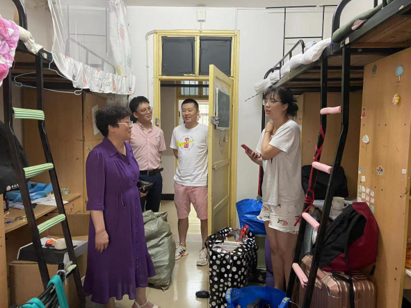 李书记深入毕业生宿舍,看望送别毕业生,为他们送去美好的祝愿。李书记非常关心毕业生离校的卫生问题,嘱咐物业人员及时做好垃圾清扫工作。