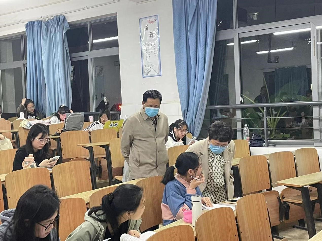 5月10日晚,校党委委员纪委书记李昱教授、我院党委副书记欧阳范剑、学工办主任唐科、班主任周海彬、辅导员曾志远深入教学楼查看学生晚自习情况。李昱书记亲切询问同学们的对口招生考试备考情况以及学习上遇到的难点、痛点,勉励同学们刻苦学习为步入工作岗位前打下坚实的基础。李书记肯定了学生的晚自习纪律和学风建设的初步成效。
