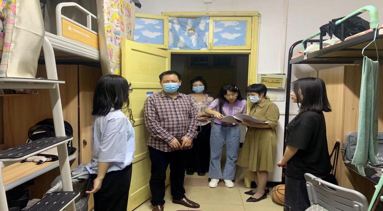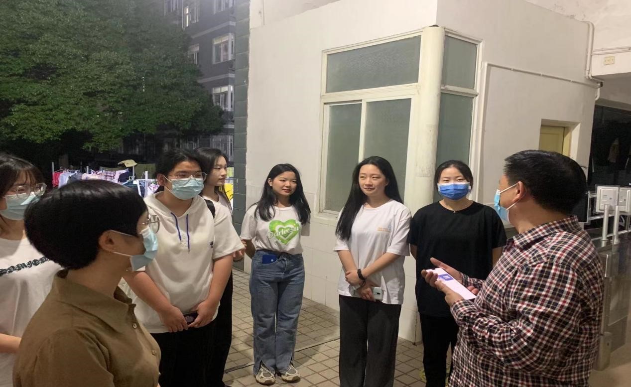 5月6日晚上,学院党委副书记欧阳范剑带领学工办主任唐科,辅导员曾志远、刘晨晨、熊薇走访学生宿舍7栋和8栋。