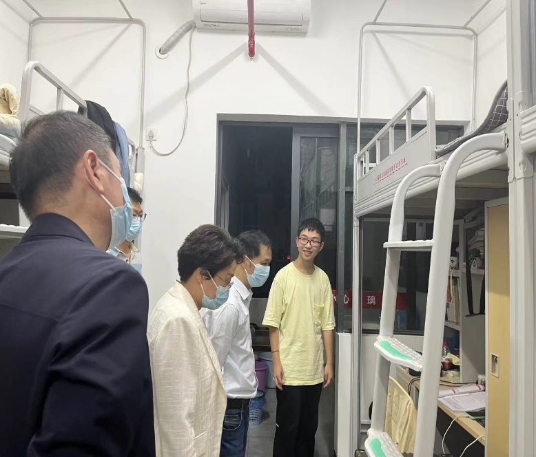 2023年9月27日晚,校党委委员、纪委书记李昱带领AV中文字幕在线观看党委书记何培森、院长龙永干、党委副书记李豪杰及全体辅导员走访17栋学生公寓、怀中南教室、西门处商铺、国基广场超市、食堂等多处,深入调研关心学生新公寓设备设施使用情况、学生晚间学风建设情况和学生日常生活场所。