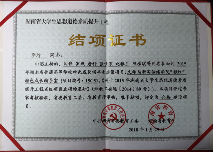我院“彩虹”项色成长辅导室于2015年12月份获得省级立项,获得了学校的大力支持,学院高度重视,经过2年的建设,于2018年1月29日通过了验收。