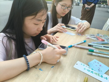 5月13日,我院在国基广场组织了“心语书签DIY”线下心理活动,同学们积极参与,认真绘制心语书签,将“积极面对每一天”等励志话语与绘画巧妙融合,在专注绘制中舒缓心情、放松自我,让指尖创作成为心灵温度的传递载体。