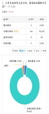 活动期间,我院依托问卷星平台开展了心理健康知识问答比赛,以线上答题形式组织学生学习心理常识、疾病应对等理论知识,有效提升了学生的心理自助能力,部分题目如“大学生面临学业压力时最有效的缓解方式”正确率达95.32%。同期,“情绪日历设计”大赛活动也同步开展,同学们用一周时间以天气符号、创意图案记录每日情绪变化,在“情绪气候分析”中总结规律,将抽象情绪转化为可视化表达,逐步建立起对自身情绪的觉察力。