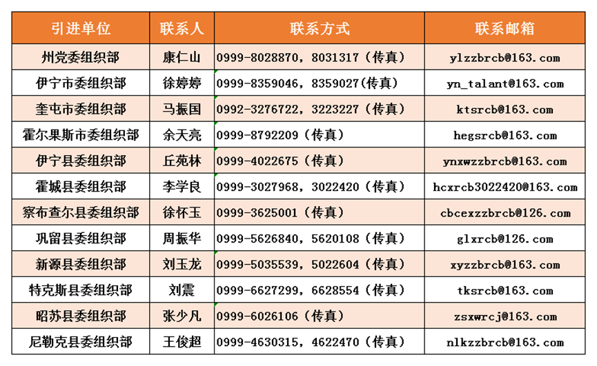 详情登陆伊犁州高层次紧缺人才招聘平台(http://rencaiban.0999123.com)、伊犁党建网(www.yldjzx.cn)、伊犁组工微信公众号查询或向相关部门咨询。
