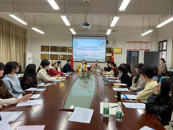 为进一步推动毕业生顺利就业,2021年4月8日,我院联合周南梅溪湖小学在玉衡楼201会议室举行专场招聘会。学院党总支书记佘向军、党总支副书记欧阳范剑、就业专干刘晨晨、学工办辅导员出席本次招聘会,2021届非定向毕业生参加了本次招聘会。周南梅溪湖小学招聘负责人进行了专场宣讲。