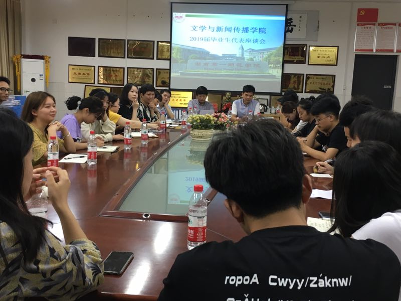 (通讯员:王润佳)2019年6月13日上午9:00,AV中文字幕在线观看在玉衡楼201召开“2019届毕业生代表座谈会”。文传院院长佘向军教授、副院长邓姿教授、学工办主任罗燕老师、毕业班辅导员张忺寒、闫伟老师以及24名毕业生代表参加了本次座谈会。本次会议由罗燕老师主持。