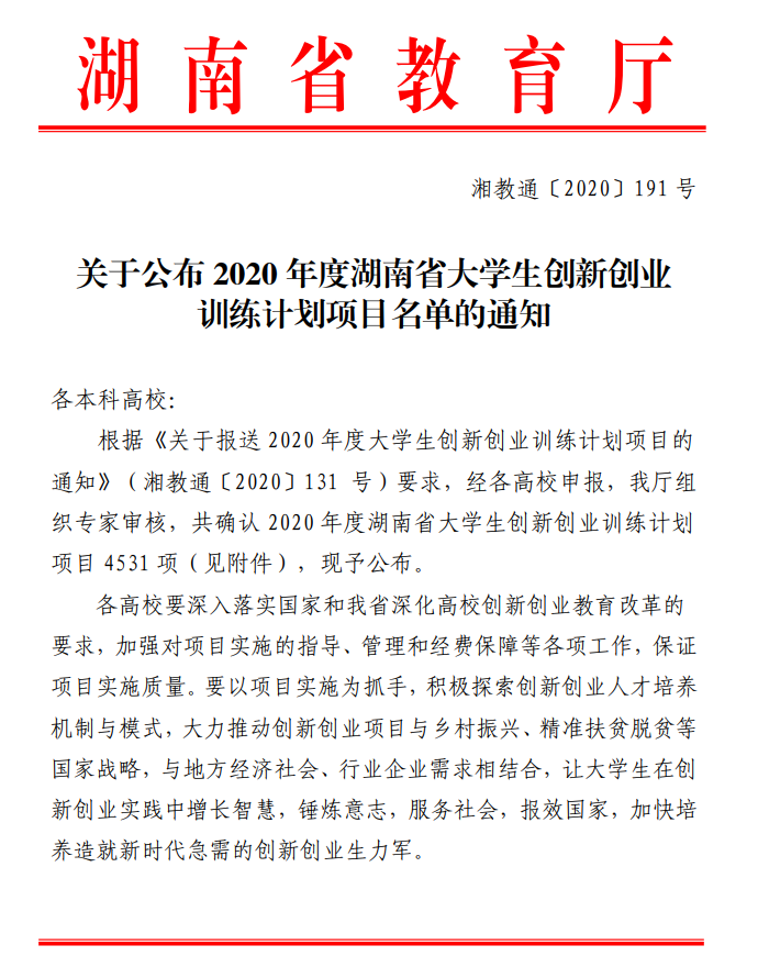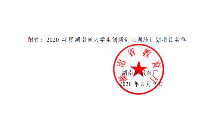关于公布2020年度湖南省大学生创新创业训练计划项目名单的通知