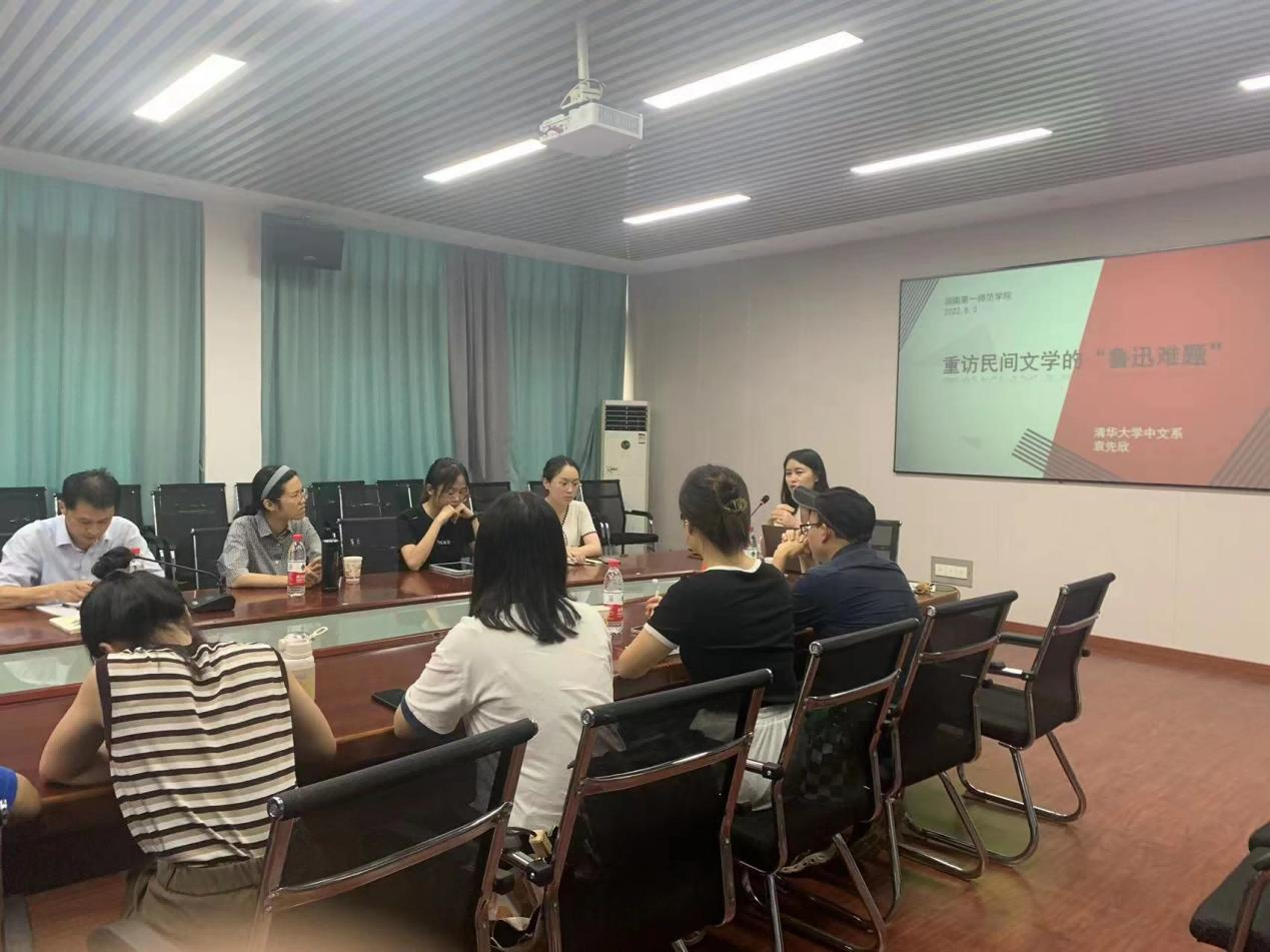 8月3日下午,湖南第一师范学院AV中文字幕在线观看特邀清华副教授袁先欣,为备战考研的在校学生开展以“重坊民间文学的鲁迅难题”为主题的文学讲座。一师AV中文字幕在线观看院长龙永干出席并总结本次讲座活动,一师AV中文字幕在线观看文学系主任杨水远,湖南大学教师、清华博士刘佳慧,湘潭大学教师、清华博士马正锋,一师AV中文字幕在线观看教师、清华博士刘君君,一师AV中文字幕在线观看教师、北师大博士孙雅平出席本次讲座。