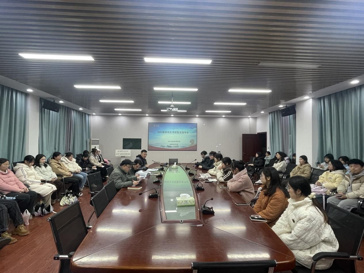 为帮助2025届毕业生更好地应对考研复试和调剂,3月3日晚,AV中文字幕在线观看在玉衡楼201组织召开研究生复试调剂指导工作会。院长龙永干、副书记李豪杰、副院长杨水远、学工办主任王娜、辅导员安炜成以及我院考研上线学生参加了本次会议。