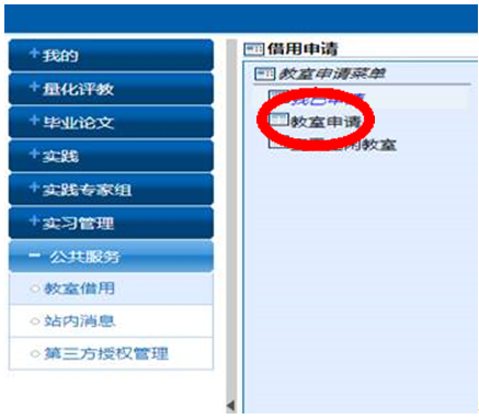 4.点击“教室申请”。