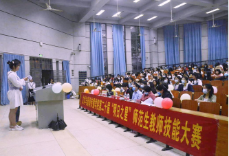 “沙场练兵,教学相长”,为进一步强化师范生教师职业技能,提高师范生从教能力,我院于4月28日晚隆重举办第二十届“明日之星”师范生教师技能大赛决赛。决赛特邀龙永干院长、王霞副院长、罗燕副院长、周杨林老师和袁利芬老师出席并担任本次评委老师,诚招15名“小学生”配合选手进行课堂互动。学院各班级240名学生参与观摩此次比赛。