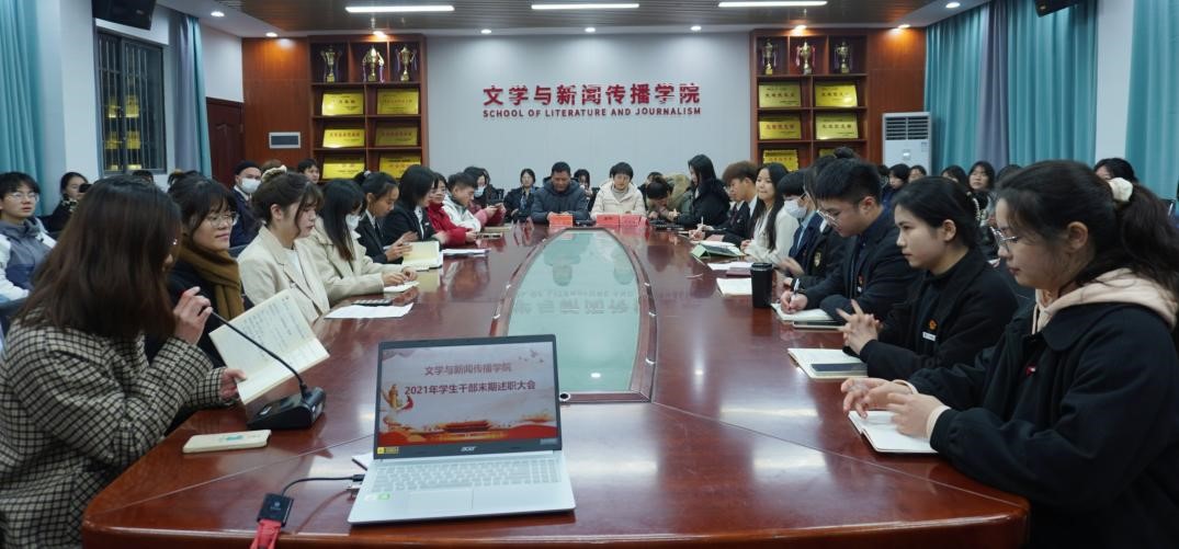 述职汇报结束后,唐老师总结道,希望团学干部们在未来的工作中扎实把准职能定位,凝聚智慧,开展形式更多元、影响更深远的校园活动,积极做好学生服务工作。欧阳副书记对本学期团学会各部门的工作给予了充分肯定,对全体团学干部的辛勤付出表示衷心感谢,同时,全面、细致地指出团学干部工作中的不足,希望全体团学干部发挥模范带头作用,做好正面引导,不信谣不传谣,积极为学院发展建言献策。鼓舞团学干部们在新学期工作中继续加强责任意识,在其位谋其职,将工作抓细抓实,加强学风、班风建设,加大创新力度,聚力同心,再创文传佳绩。