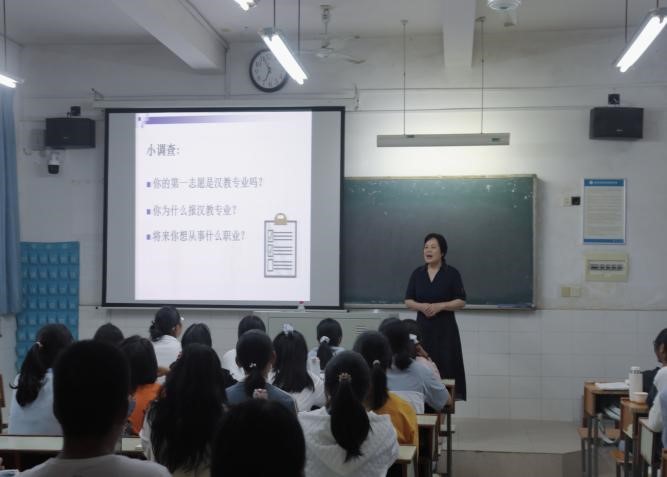针对汉语国际教育专业,汉语国际教育专业负责人毛丽副教授于润寰南204教室为2021级汉语国际教育1班作专题讲座。首先,毛丽教授用“第一志愿是否是汉教?”“为什么报汉教?”“将来想从事什么职业?”三个小问题引入,与同学积极互动交流。随后,毛教授主要介绍了本专业培养目标与特色、课程设置与实践活动、就业方向与职业规划。她表示,对外汉语教师应具备知识结构、能力结构、思想心理等方面的各种素质。此外,毛教授分享了优秀毕业生事迹以及成功者的经验——注重细节、把握时间、自我约束、目标明确、勤学好问等。最后,毛教授希望同学们仰望星空,脚踏实地,做最勇敢的追梦人。