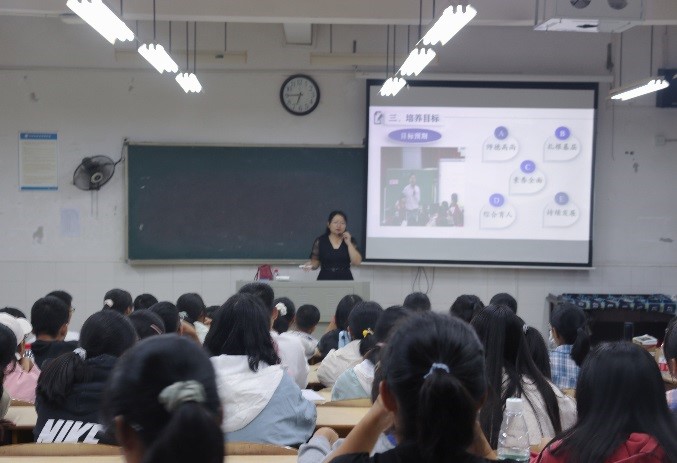 针对汉语言文学专业(初中起点六年制),副院长罗燕副教授于玉衡南101为2021级全体初招班级开展专题讲座。罗院长首先溯流追源,介绍了学校办学历程,随后从师资力量、培养目标、毕业要求、课程体系、办学成效方面详细地介绍本专业。罗院长表示,作为教师需要对学生负责,对社会负责,对国家负责,要牢记“一践行,三学会”—践行师德,学会教学、学会育人、学会发展。同时,罗院长为新生分享了丰富的推荐书目,给予新生们忠恳的专业学习建议。