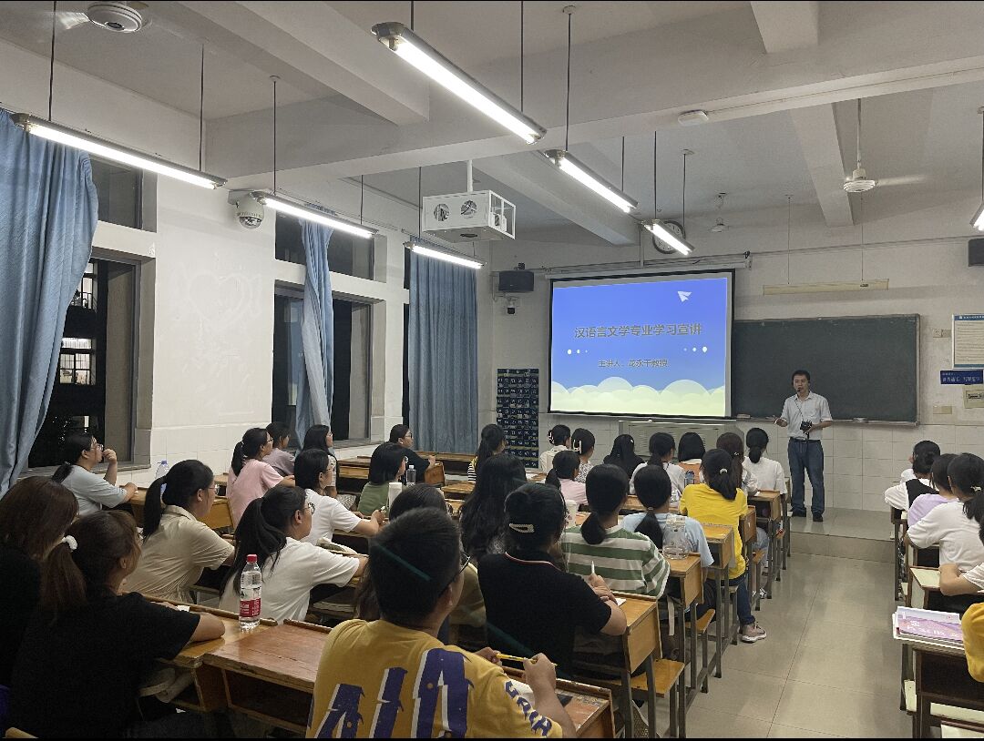 针对汉语言文学专业,院长龙永干教授、副院长王霞教授分别于润寰南203、202教室为2021级汉语言文学3个班级作专题讲座。龙院长从汉语言文学的起源发展、专业结构、专业内容、专业特色等方面详细地介绍了本专业,并且就师范类模块、职业规划、毕业要求、专业学习等方面给予了同学们宝贵意见。龙院长告诫各位同学要注重对教材与文典的阅读与钻研,希望同学们能够自主阅读《论语》《孟子》等经典名著,提高自身的专业素养。最后,龙院长对同学们在校生活的行为规范提出建议,帮助新生更快、更好适应大学生活。王院长就汉语言文学专业的专业历程、师资队伍、培养目标、毕业要求、课程体系和办学成效做了详尽讲解。王院长表示,我院汉语言文学专业师资力量雄厚,教学成果优异,希望我院汉语言文学学子在四年的学习中掌握能力,积极将理论与实践相结合,提高综合素质和教学能力,做到践行师德、学会教学、学会育人、学会发展。最后,王院长寄语新生“奋斗的青春最美丽”,鼓励新生奋斗不止,学习不停,向着高处攀缘,不断进步。