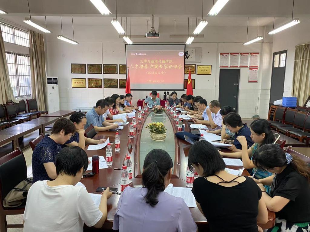 为进一步做好2021年新一轮本科专业人才培养方案修订工作,2021年9月12日上午在玉衡楼201召开汉语言文学及汉语国际教育专业的人才培养方案专家论证会。会议由龙永干院长主持,邀请了湖南师范大学吕双伟教授、湖南科技大学人文学院聂志军教授以及湖南师大附中博才实验中学陈建文、长沙市岳麓区中学黄晓莲、长沙市雅境中学曾艳红、长沙市中雅培粹学校蒋博、长沙市芙蓉区育才学校朱爱朝、湖南第一师范学院第一附属小学余运群6位来自中小学的一线教师参加会议,同时张福国书记、罗燕副院长、王霞副院长及汉语言文学、汉语国际教育专业负责人及团队教师参加会议。