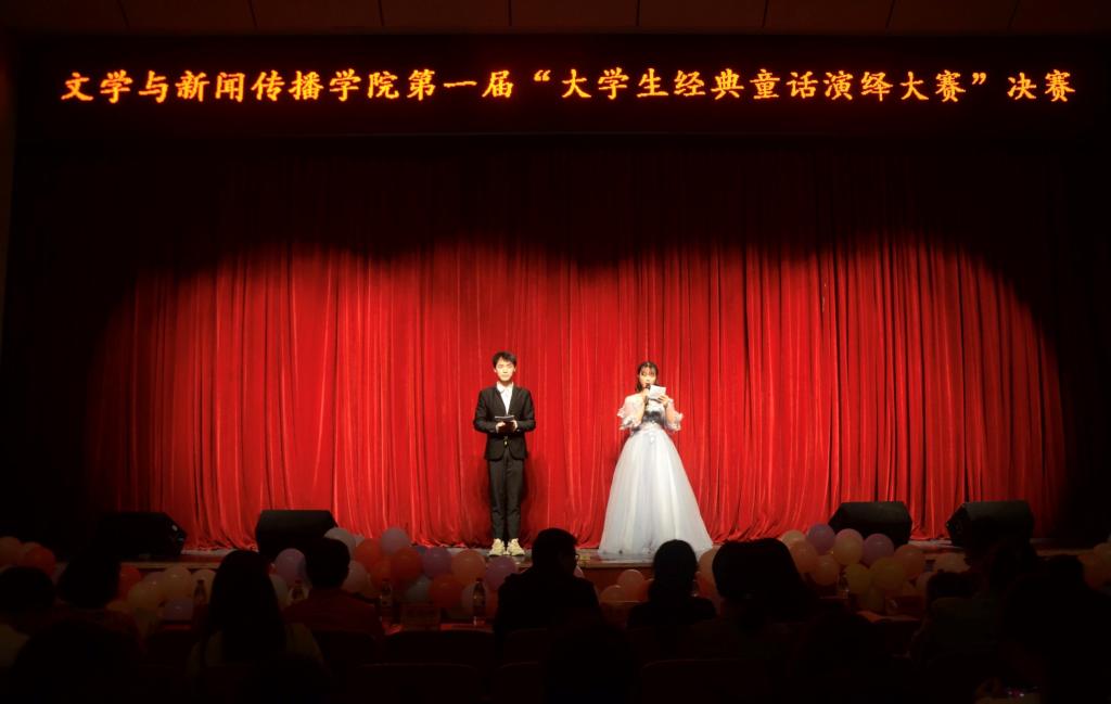 为了提高师范生对于童话的感知能力,提升专业技能,5月28日晚,由AV中文字幕在线观看主办的第一届“大学生经典童话演绎大赛”总决赛于特立南209实验剧场隆重举行。我校发展规划处刘澍心处长、保卫处罗燕副处长、AV中文字幕在线观看文学教研室、各科室老师出席了比赛。文学教研室皮进老师、葛慧芳老师、张战老师担任本次大赛的指导老师,文学教研室刘智跃老师、葛慧芳老师、皮进老师、张慧老师担任本次大赛的评委老师。