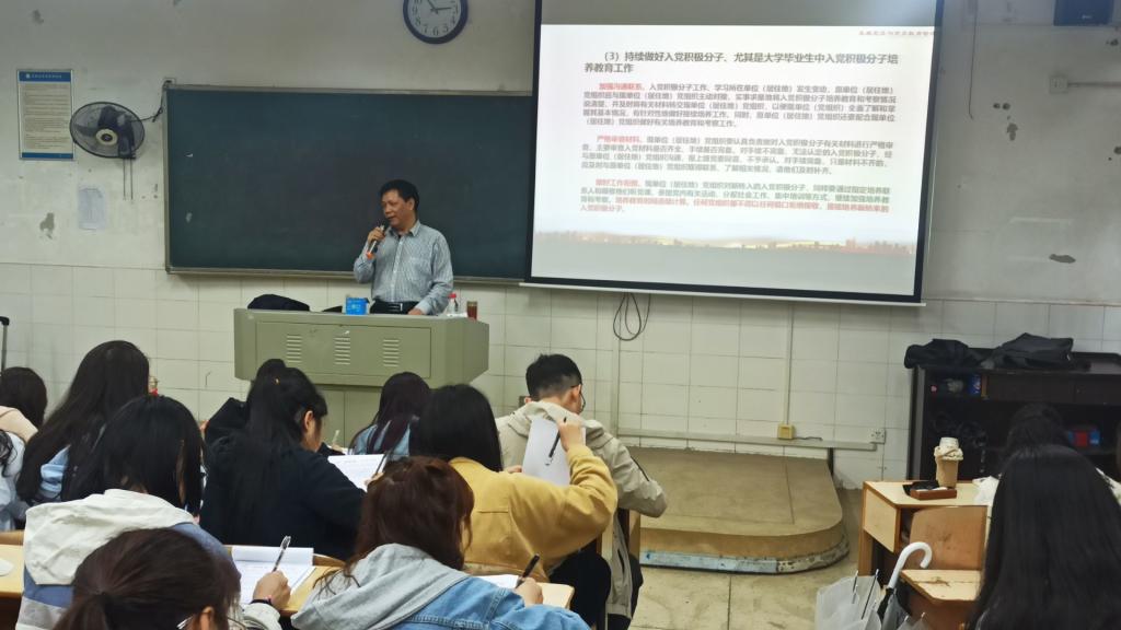为端正学员们的入党动机,确保其发展质量,在4月24日下午14:30-16:00,我院分党校副校长、党总支欧阳范剑副书记为我院第八期入党积极分子培训班讲授了“厘清入党条件,严格履行入党的程序”主题党课。