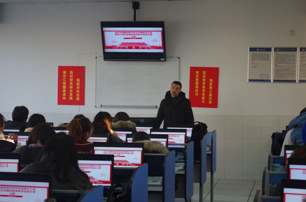 本着坚持“为国内外培养汉语国际教育人才,为弘扬中国的语言文化服务”的办学思想,提升教学技能,展示汉语教师风采,1月8日上午,我院特举办了第三届汉语国际教育教学技能大赛决赛。副院长葛春蕃莅临现场观摩指导,毛丽、 姚必鲜、刘晓云老师担任了本次大赛的评委。