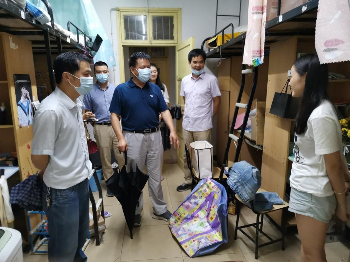 (记者 张群英)为推动毕业生离校工作开展,保证毕业生安全离校、文明离校,6月23日上午,我院党总支书记佘向军、院长龙永干、党总支副书记欧阳范剑、副院长葛春蕃带领全体辅导员走访毕业生宿舍,检查毕业生离校情况。