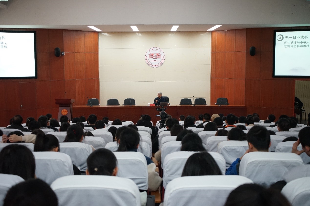 互动环节,纪老师耐心解答了“曾国藩、李鸿章和左宗棠三人的人物特点”“曾国藩的教育理念”等师生代表提出的问题。本次讲座,使在场师生进一步了解了曾国藩的求学与仕途经历,深入领会了曾国藩的修身、齐家、处世智慧,激励在场师生不断提升个人思想道德修养,提高自身的综合能力。