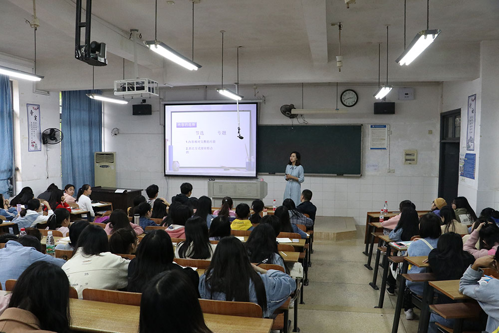 10月15日下午,湖南省教学能手湖南第一师范学院第二附属小学语文学科骨干教师廖珊璐在怀中南103教室,就“如何上好小学语文片段课”为我院学生做教学讲座。本次讲座由副院长葛春蕃主持,100多名学生聆听了本次讲座。