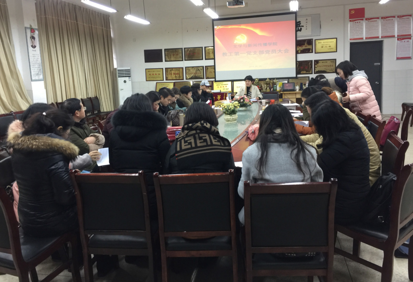 承前启后、继往开来,为建设一支有时代精神、创造精神的党支部,把我院教师第一党支部建设得更好,2019年1月15日下午本学期末,AV中文字幕在线观看教师一支部学院党员大会于玉衡楼201顺利召开。院总书记刘澍心老师,第一党支部书记周海彬,以及会议主持罗燕老师等出席了本次会议。