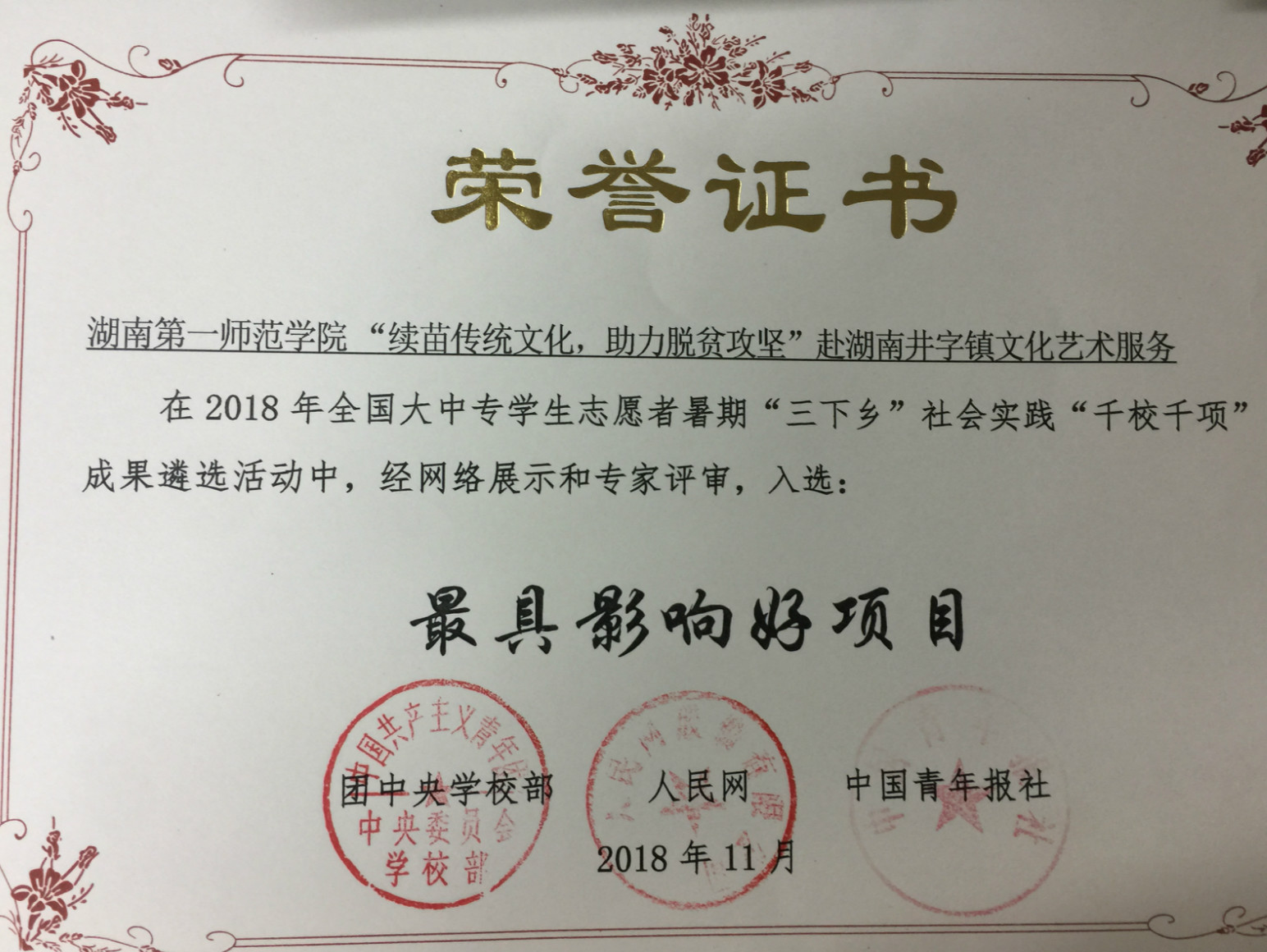 近日,由中国青年报社联合全国数百所高校开展的“2018寻找全国大学生百强暑期实践团队”活动,经过高校推荐、团队自荐、实践展示、网络投票、技术筛查、专家评审等环节后,结果正式发布,AV中文字幕在线观看赴娄底双峰井字镇文化艺术服务团队被评为“最佳实践团队”(全国仅10个团队获此殊荣),并获得暑期“三下乡”实践梦想团队金奖。