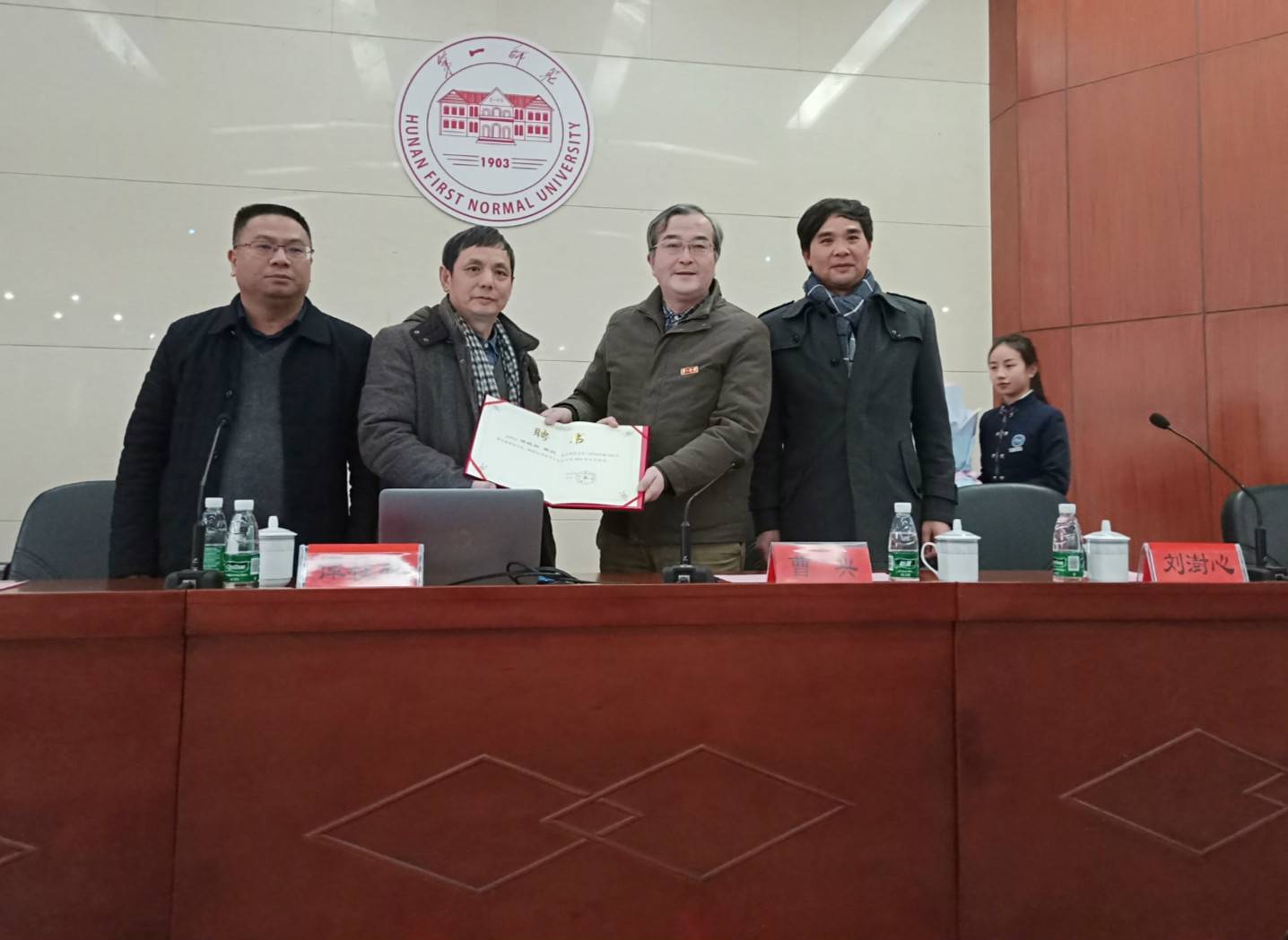 仪式上,曹兴副校长简要介绍了谭桂林教授的基本情况,并向其颁发了聘书。谭桂林教授表示,湖南第一师范学院有着“千年学府,百年师范”的美誉,历史悠久,底蕴深厚,在湖湘文化乃至中国文化和教育事业发展进程中都有着举足轻重的地位。能受聘成为湖南一师的一员,深感荣幸,这既是一种荣誉,更是一份责任,今后当和湖南一师一道,共同努力,为学校的建设与发展贡献自己的力量。