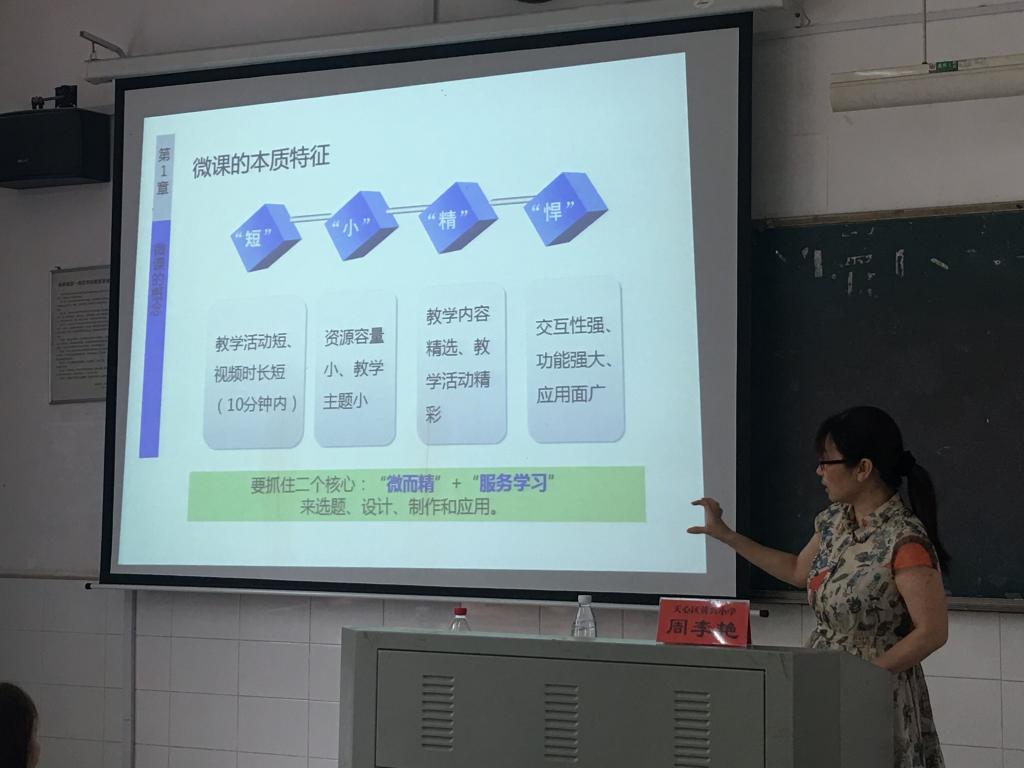 2018年6月21日上午,AV中文字幕在线观看邀请教师教育联盟小学——长沙市天心区黄兴小学的周李艳校长为师生进行了题为“微课的概念、类型、制作与应用”的讲座。