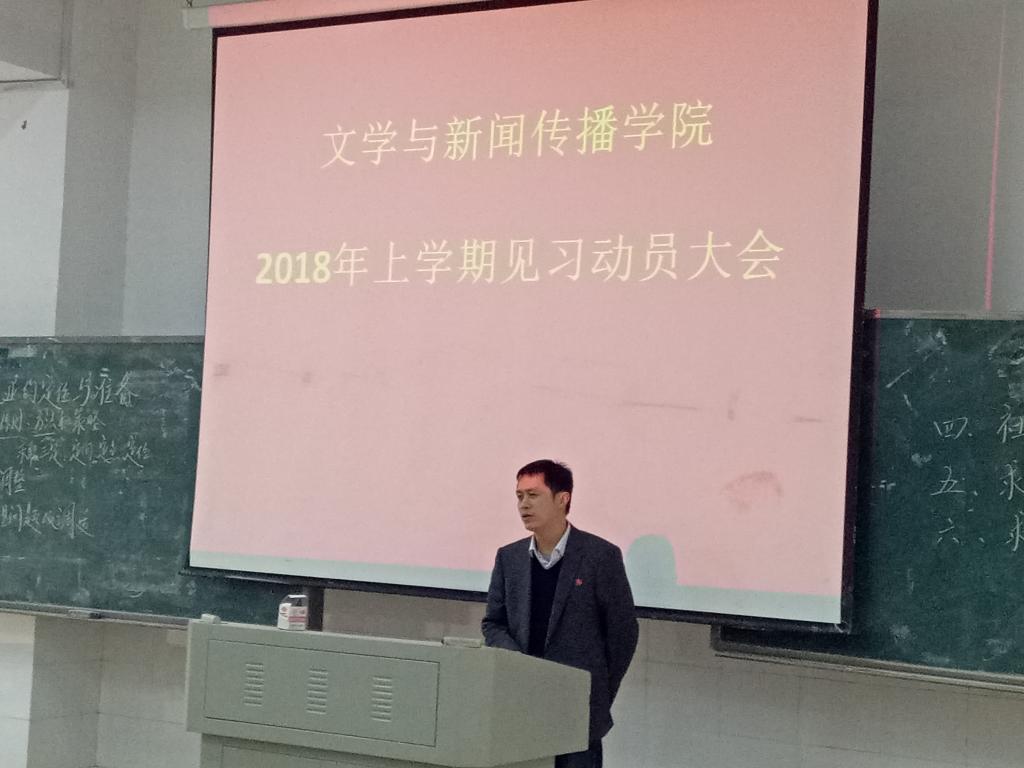4月16日、23日,文传院见习动员大会分两批次在分别在实验楼C101和理科楼报告厅(一)举行,副院长龙永干、讲座嘉宾袁利芬、周杨林、陈慧老师,文传院所有见习学生共计1100余人参加了大会。会议由教务办主任李希光老师主持。