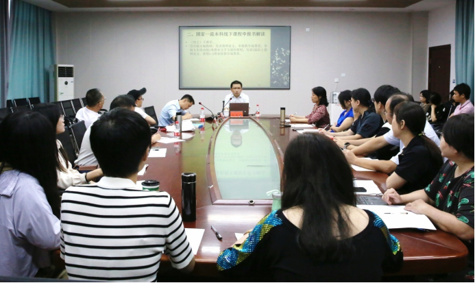 2023年8月30日,湖南师范大学文学院副院长、博士生导师、教育部“青年长江学者”吕双伟教授应我院邀请,在玉衡楼201为学院老师开展题为“如何申报国家一流课程——以本人主持的《唐宋文学一》课程为例”的讲座。讲座由学院院长龙永干主持,副院长杨水远、汉语言文学系、汉语国际教育系、综合教研室60余位教师参加讲座。