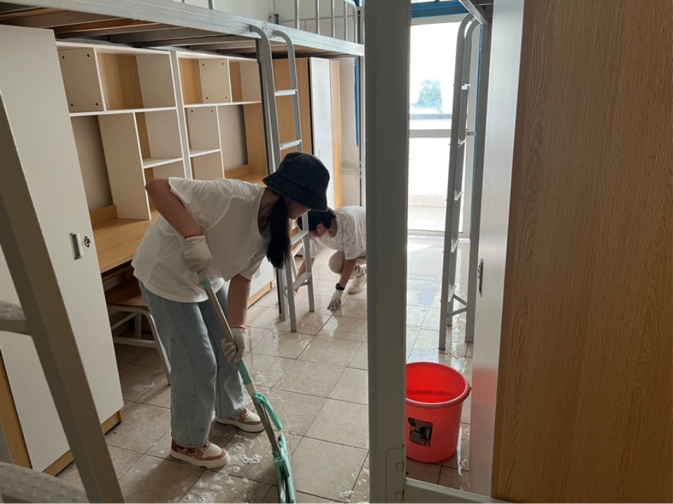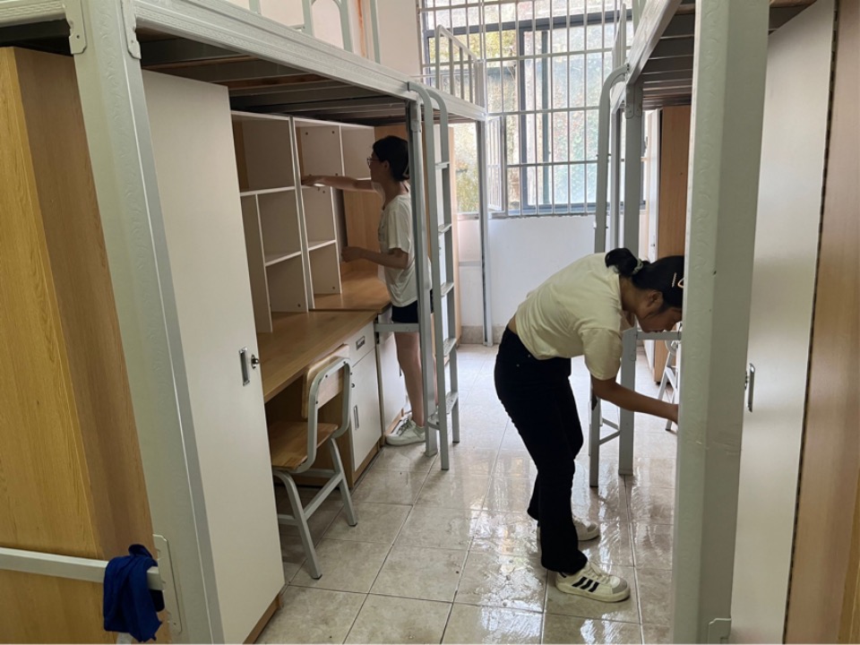 为了打造舒适之家,今年暑假期间,学校对城南校区学生宿舍进行了全面“升级”,更换了全部家具、新装了空调、增添了饮水机、自动售卖机等设备,硬件改造、服务提质,让同学们感受到了学校暖暖的热心、满满的诚心。8月开始,学院领导和相关负责老师多次前往城南校区学生宿舍了解寝室环境、排查安全隐患,学生党员、入党积极分子及团学会干部40余人前后三次主动前往学生宿舍打扫卫生。9月5日,12名朋辈辅导员前往新生宿舍仔细检查寝室家具、空调等设施情况,确保宿舍环境的和谐安全,彻底落实了“新学期、新气象”的要求。