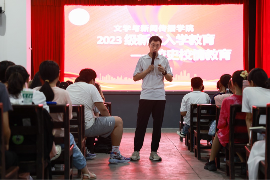 9月10日晚,AV中文字幕在线观看在城南书院大礼堂召开2023级新生见面会暨开展校史校情教育。学院全体党政领导、三办主任、新生班级辅导员和班主任,以及493名2023级新生参加见面会,会议由学院党委副书记李豪杰主持。