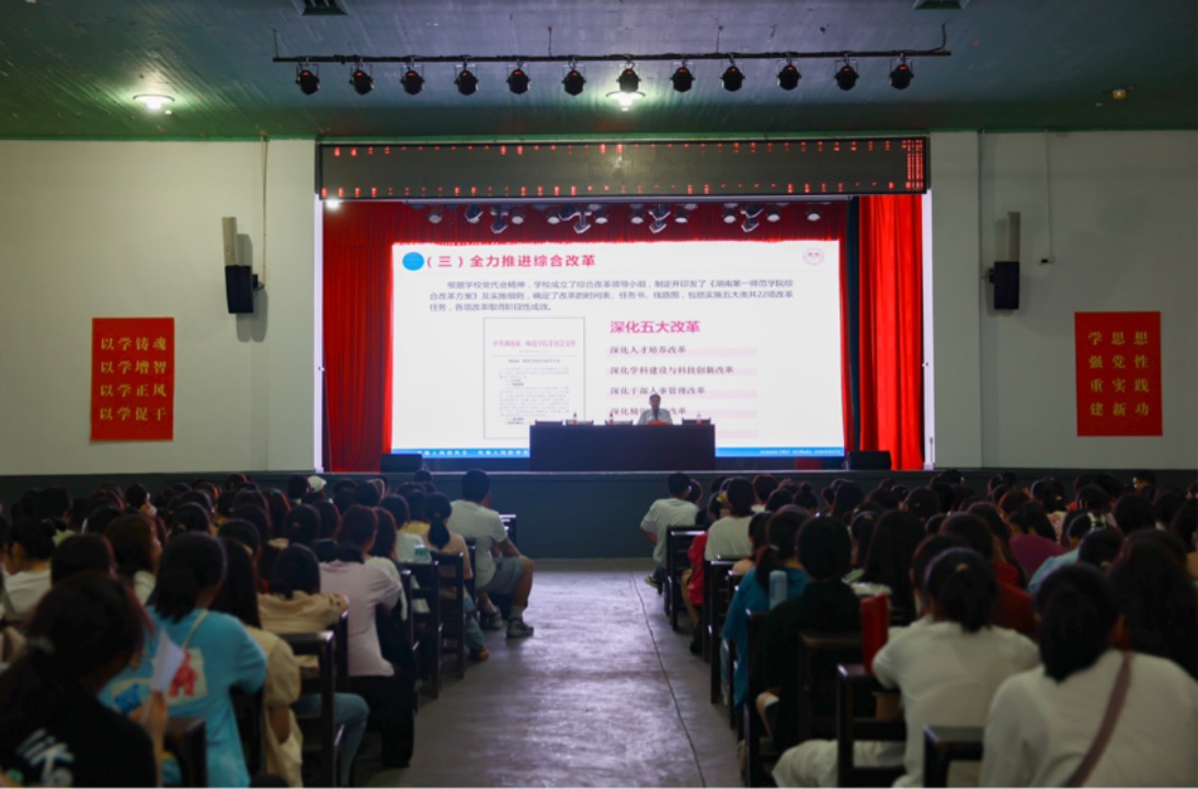 然后龙院长就校史校情向新生授课,全方面、多层次地从专业、课程、师资、优秀学子等介绍了我校的情况。