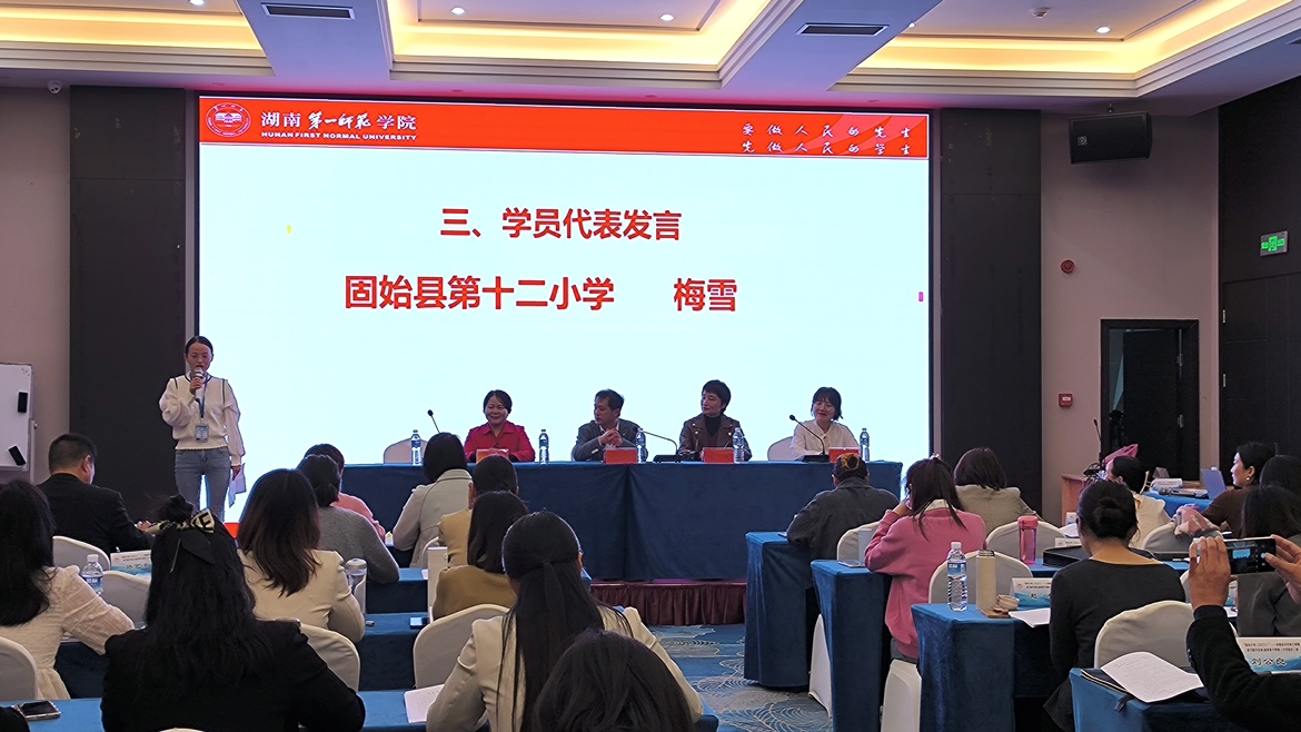 接着,来自信阳固始县第十二小学的梅雪老师作为学员代表发言。梅雪表示一定要珍惜本次的研修机会,自觉遵守学习纪律,全身心地投入学习中,加强沟通、交流和研讨,努力提升自我,圆满完成各项培训学习任务。