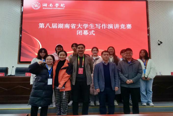 11月26日上午,由湖南省教育厅主办、湘南学院承办、湖南省写作协会协办的“第八届湖南省大学生写作演讲竞赛”在郴州市顺利落下帷幕。我院共派出9名同学参赛,荣获一等奖3项,三等奖1项,并获“优秀组织奖”和“团体二等奖”。