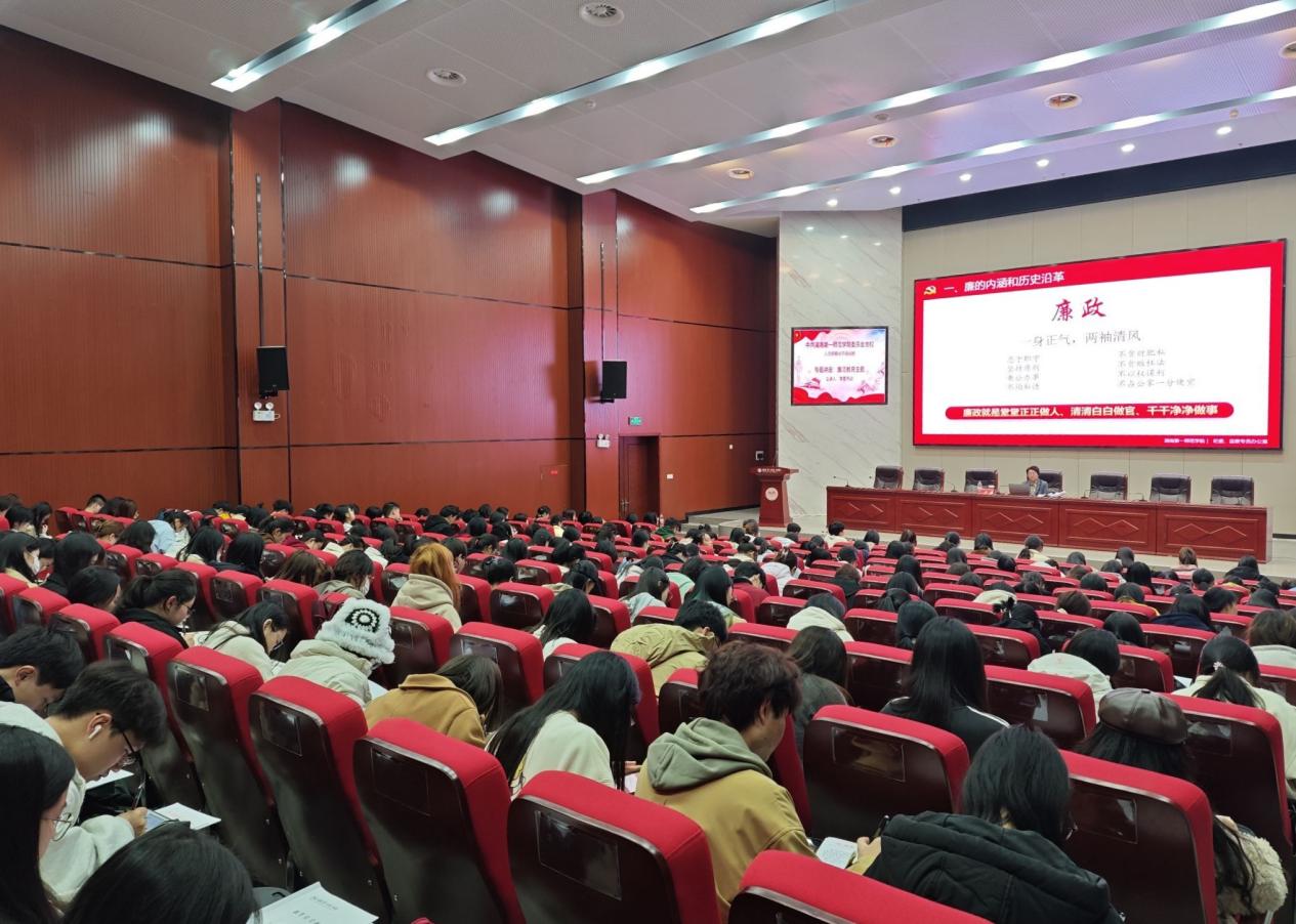 李昱从四个方面阐述了大学生廉洁教育的重要意义,大学生廉洁教育是培养社会主义建设者和接班人的需要、构建社会主义和谐社会的需要、高校廉洁文化建设的需要、弘扬中华民族传统美德的需要。李昱要求大家思想上永远保持先进性,坚持政治理论学习,不断提高思想素质和道德素质。
