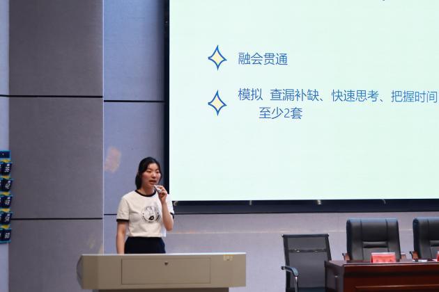 20级汉语言文学1班杨婧怡分享了自己考研宝典,她鼓励同学们要保持良好心态,不要被外界所影响,一站上岸;20级汉语国际教育1班的梁婧茹分享了如何在择校上做出更适合自己的选择和专业相关的书籍;20级826汉语言文学班的范丹妮则分享了宝贵的时间规划经验和详细的备考心得,她建议同学们应该要结合自身情况,制定作息时间表,精准把握时间;同时也有来自20级广播电视学的李紫珺为同学们分享了申请境外升学的经验,她表示同学们在择校时一定要关注自己的绩点和文书是否符合申请学校的要求,做好最充分的准备。