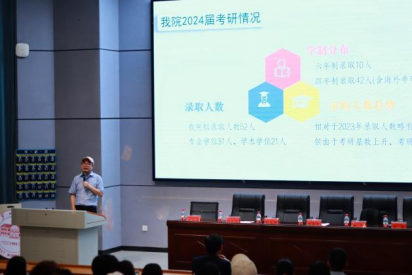 会议伊始,杨水远副院长发表致辞。他强调了考研不仅是一场知识的竞赛,更是一次意志和毅力的考验,并鼓励所有考研学子保持积极向上的心态。