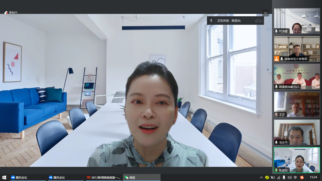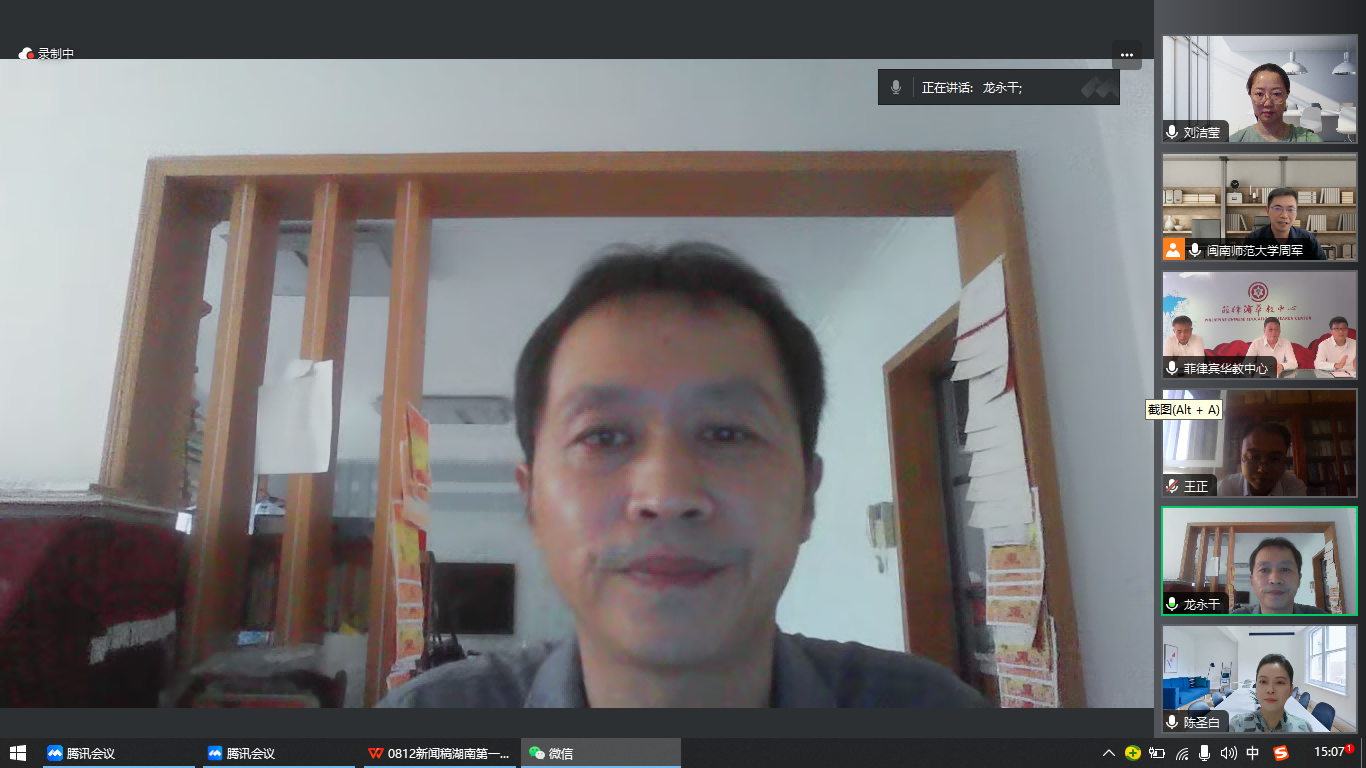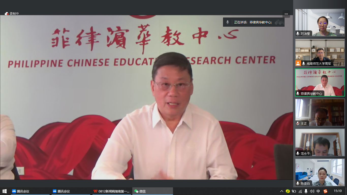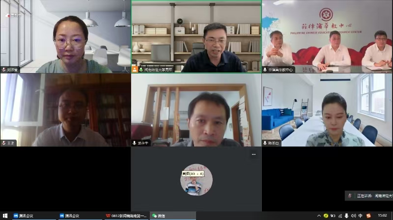 为进一步拓展我院汉语国际教育专业实习与就业平台,8月12日下午,我院与菲律宾华教中心线上召开了实习就业基地建设工作会议,菲律宾华教中心主席黄端铭、副主席兼师资部主任刘统厚、交流部主任林有耐,我校国际交流与港澳台事务处处长陈圣白以及院长龙永干、副院长杨水远出席了会议。我院汉语国际教育系主任王正、综合办主任刘洁莹参加了会议讨论。我院挂职副院长、闽南师范大学文学院教师周军教授主持了本次会议。