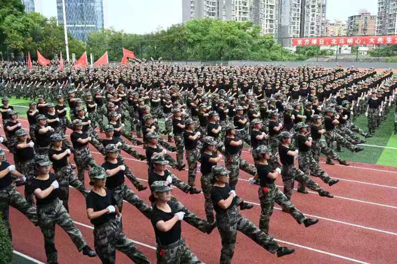 雄壮的国歌庄严响起,大会正式拉开帷幕。伴随着“标兵就位”“分列式开始”号令的发出,赤色跑道上国旗护卫队庄严入场,紧随着的25个连队方阵、水瓶连、拳术连等依次进行汇报表演。似火骄阳下,新生昂首挺胸的姿态、铿锵有力的步伐、响彻云霄的口号,一招一式经过军训的刻苦训练尽显英姿飒爽,展现了新一代一师人的意气风发。大会还进行了歌曲联唱、手语操、校歌演唱等特色汇演。
